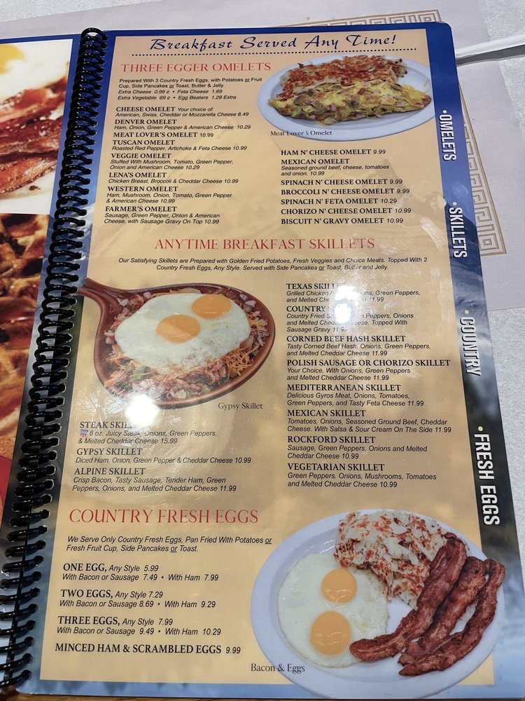 Introducing the menu at Alpine View Restaurant, a cozy diner located in Rockford, IL. Customers rave about the welcoming staff, daily specials, and delicious homemade dishes. From classic breakfast options to hearty dinners and a variety of desserts, there is something for everyone. The friendly and family-owned atmosphere adds to the overall dining experience. Customers especially love the veggie omelet, country fried steak and eggs, and the assortment of soups. While the decor may be slightly dated, the quick service, clean environment, and great prices make up for it. Whether you're looking for a taste of home or trying something new, Alpine View Restaurant is highly recommended by regulars and first-time visitors alike. Don't miss out on this hidden gem in Rockford!